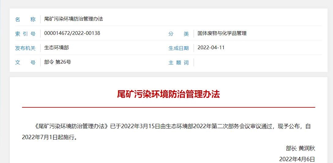 尾礦污染環境防治管理辦法